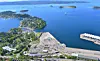 Flyfoto Sjursøya, mai 2020. Bildet viser Ormsundkaia, Søndre Bekkelagskai, Kneppeskjærutstikkeren og oljeterminalen.