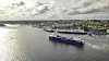 Containerskipet «Samskip Kvitbjørn» seiler inn mot Arendal samtidig som hydrogendebattene går høyt under Arendalsuka. Med støtte fra ENOVA i ryggen vil søsterskipet «Samskip Kvitnos» i løpet av 2025 bli det første av en slik størrelse som klargjøres for hydrogendrift.