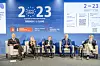 Har havnene det som trengs, var hovedspørsmålet under en av paneldebattene. Fra venstre debattleder Eamon O’Reily, Margi Van Gogh, World Economic Forum, Boudewijn Seimons, Rotterdam Havn, Jens Meier, Hamburg Havn og Zeno D’Agostino, styreleder i ESPO og leder av Trieste Havn.
