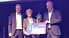 Årets unge talent Hedda Malmstöm sammen med administrerende direktør for NHO Logistikk og Transport, Are Kjensli og samferdselsminister Jon-Ivar Nygård. Sistnevte overrakte prisen til vinneren under konferansen Transport & logistikk.