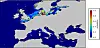 Kartet viser sannsynligheten for å overskride skadelige konsentrasjoner (1:1 million) av scrubbervann i europeiske havområder i 2018. Røde områder viser 100 % sannsynlighet. Simuleringene er utført med den norske åpne modellen ChemicalDrift..