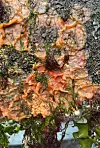 Bildet viser det fremmede mosdyret Schizoporella japonica, som har festet seg på en fritidsbåt i en norsk småbåthavn.
