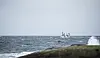 Mindre fiskefartøy i grov sjø utenfor Karmøy.